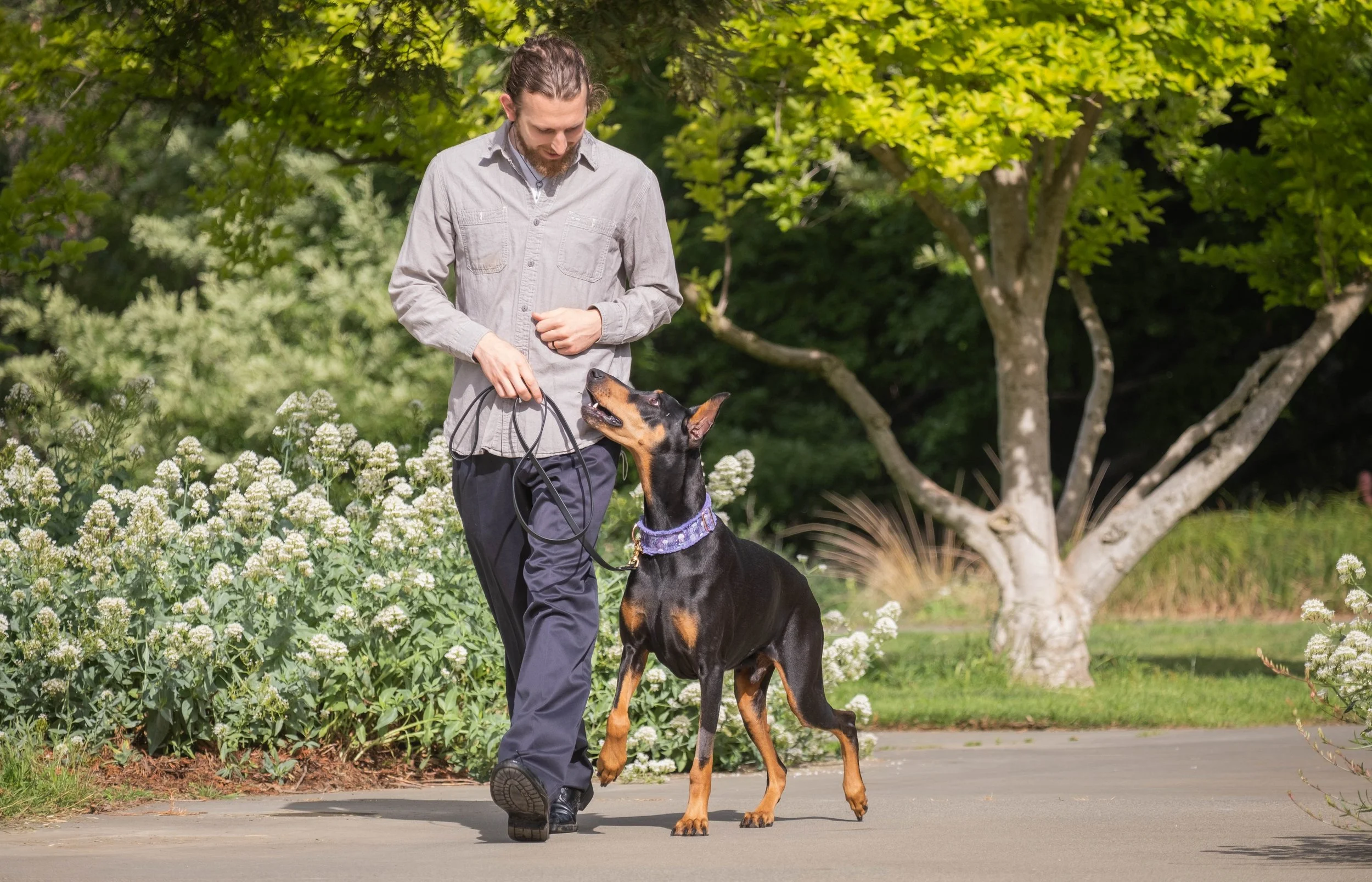 Whether you want your dog to stop pulling on a leash, jumping on friends, or recall in a park, weekly training lessons are a great place to start. These classes are available in person or online through video call as I teach you the secrets of communication with your dog through body language and positive reinforcement.